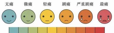 顾名思义,根据患者疼痛时候面部的表情状态,来判断这段时间患者是不疼,稍微有点疼,疼,太疼了,疼死了之类的疼痛程度。这种分类方式其实也有一定的科学性,其实在日常生活中我们也有着切身的经验,如果不怎么疼的话,大家面部时没什么表情的。而如果是太疼了的话,很多人就会面部扭曲的。