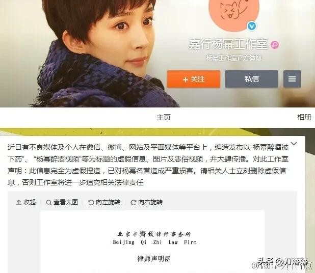 杨幂公司委托律师发函,声明:此信息完全为虚假捏造,已对杨幂名誉造成严重损害。请相关人士立刻删除虚假信息,否则工作室将进一步追究相关法律责任。