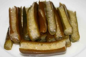 海笋,又名 象拔蚌,个体有大有小,栖息地因种类而异。通常其两扇壳一样大,薄且脆,前端有锯齿、副壳、水管(也称为触须),这水管很像一条肥大粗壮的肉管子,当它寻觅食物时便伸展出来,形状宛如象拔一般,故得 象拔蚌之美名。其食用部分主要取其拔( 水管),其拔肉色洁白,肉质细嫩,口感清鲜甜美,被视为名贵滋阴海鲜美味品种之一。海笋的出肉率高,达60% -70%,其中主要食用部位为 水管肌,占总食用量的30% -35%,每100克含热量81千卡、蛋白质14.4克、脂肪1.3克,具很高的 营养价值。