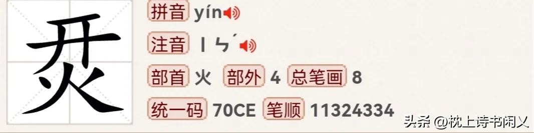 烎:读音为yín是一个汉语汉字,为“㶣”的异体字。