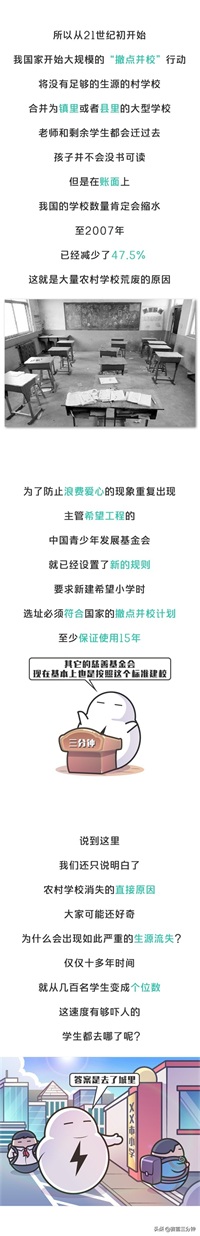 当农村人口大量外流,社会各界又认识到“就地办学”的教学质量问题,在县城或者镇里办大型学校,集中各村学生,又成了新的潮流。这样的学校教学质量确实更好,但也存在相应的问题。 比如说,孩子离家过远,每天需要花费大量时间通勤,家长也要费力接送,对于那些采用住校制的学校而言,可能让自理能力还不够强的孩子过早进入了集体生活,并增加了家长的住宿费开支。