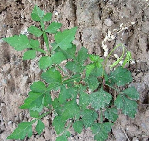 二是叶为掌状3-5小叶,小叶片羽状深裂或有深锯齿不分裂;5小叶的中央小叶深裂到基部并且有1-3个关节,关节间有翅;3小叶的中央小叶有1个关节或无关节,基部狭窄成翅状;叶柄长1-4公分,无毛,托叶早落。