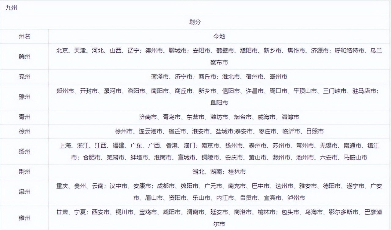 古人把华夏分为九州,是指哪九个州?这九州现在叫什么名字?
