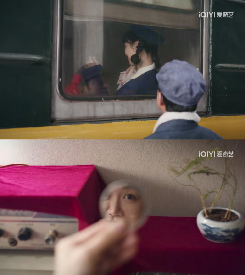姚玉玲一出场,在列车上拿着把小镜子欣赏自己,笑容张扬,一个爱臭美、爱显摆的人设跃然屏幕。