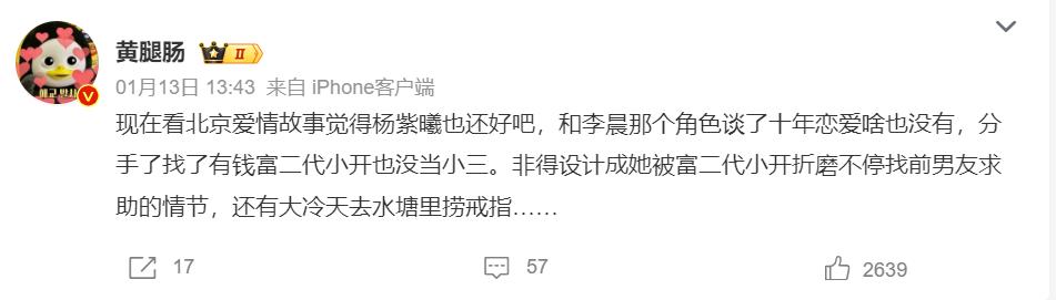 " 她要是犯法了那就拍她去坐牢,而不是用这种刻意的剧情羞辱她 "。