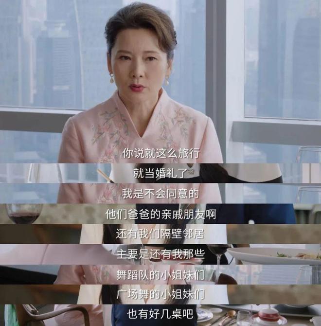 比如,剧中两家人第一次见面时,对婚礼的不同观念。