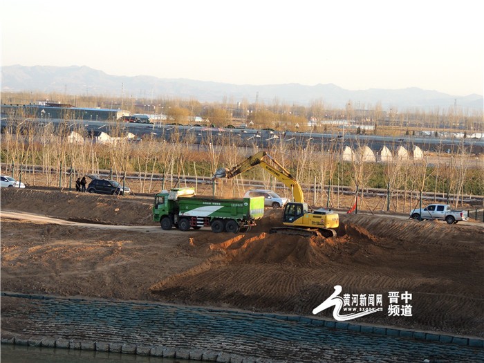 潇河大桥是晋中第一座景观桥,采用悬索钢结构,桥的两面设有观光走廊,游客可以边健身边欣赏潇河美景。在现场,挖掘机及工程车来往穿梭,市园林绿化处总工程师赵贵生告诉记者,潇河流域(108国道-郝村段)综合治理工程,也就是潇河四期工程,现在已经复工,施工人员正在进行土方挖掘和种植前的准备工作。