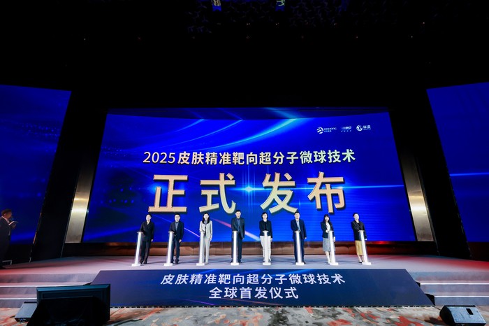 随后,与会者共同见证了皮肤精准靶向超分子微球技术的全球首发仪式以及微球化技术动效解析首发。这一技术的发布,标志着再生医学与精准护肤领域取得了重大突破,为行业带来了全新的发展。