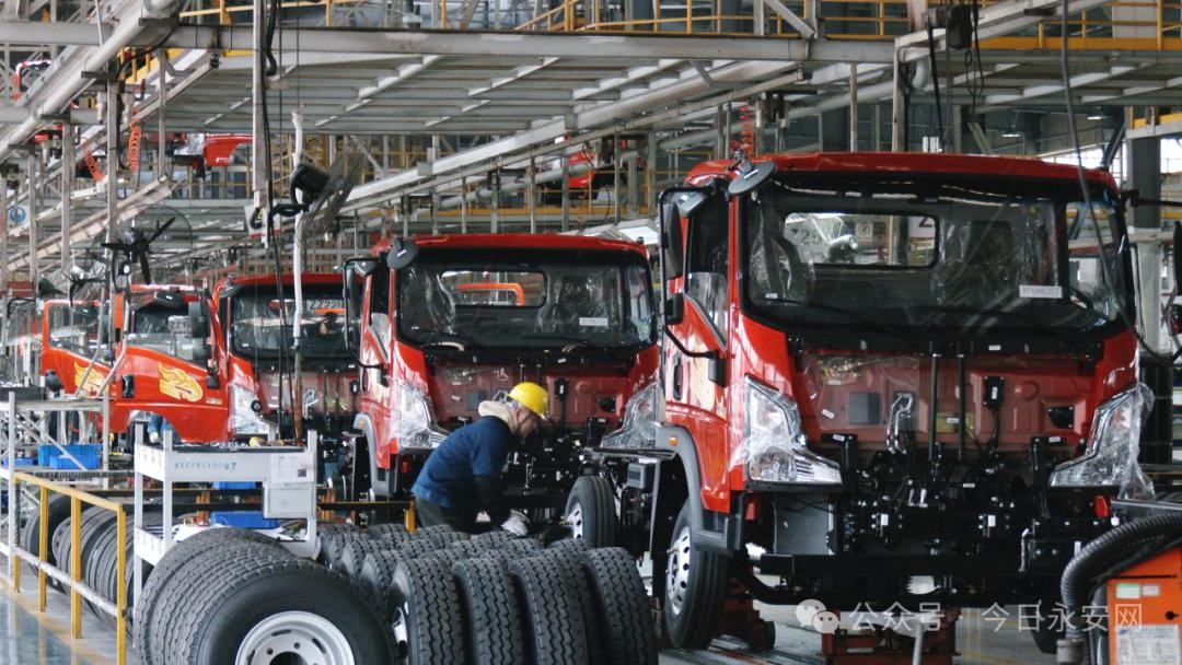准备底盘、安装发动机、组装车头……中国重汽福建海西汽车公司总装车间内,流水线匀速运转,工人有条不紊地装配、调试部件,不到5分钟,一辆崭新的“豪曼”商用卡车便总装下线。“这是我们全新升级的重卡车型M5。”重汽海西技术中心相关负责人指着刚下线的卡车介绍,相比前代产品,新车型驾驶室的内部空间更宽敞,智能配置得到升级,驾乘舒适性提升不少。