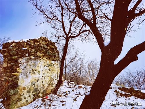 白雪中的残垣断壁,与树枝相映,多了几分意境之美。