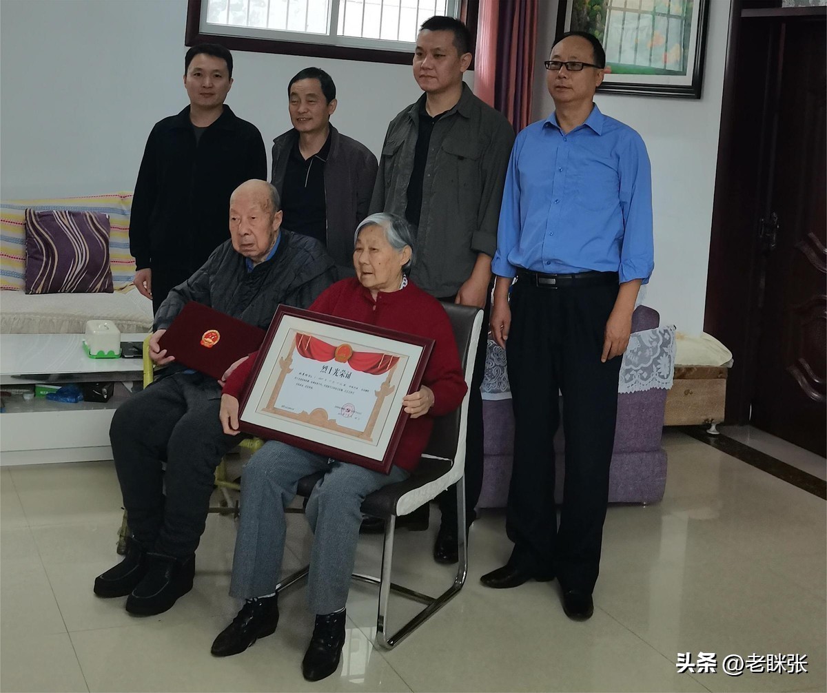 图片说明:2023年9月30日第十个国家烈士纪念日前夕,新乡市卫滨区军人事务局副局长李基武、万文捷,优抚科科长尹伟等(后排),将姚景瑞《烈士光荣证》颁发给姚景瑞的儿子——86岁的姚铁濮夫妇(申报手续由烈士子女户籍所在地提交)。
