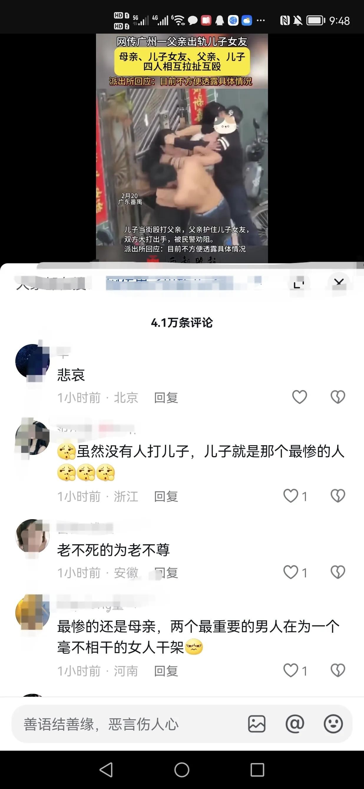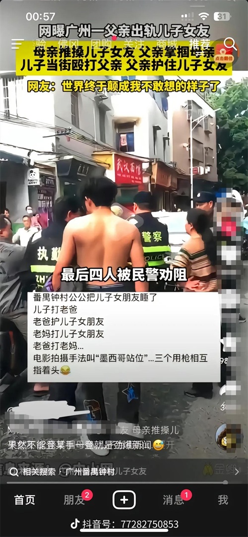 家庭纷争引发互殴事件:广州出轨家庭四人激烈对抗!