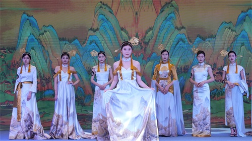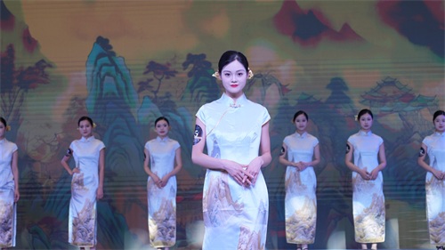 随着背景屏幕缓缓展开一幅幅青绿山水画卷,第三轮《群山万壑图》主题秀震撼上演。佳丽们换上了画满中国山水图案的旗袍和长裙,她们的身姿与背景完美融合,仿佛成为了画中人,一颦一笑间,都流露出东方女性的温婉与大气。这场走秀,不仅是一场视觉的享受,更是一次心灵的洗礼,让人深刻感受到中华文化的博大精深与独