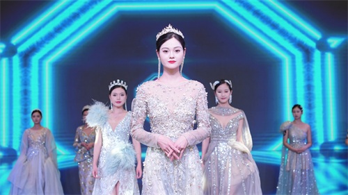 转瞬间,舞台换上了梦幻的蓝灰色调,第二轮《爱丽丝仙境》主题秀悄然开启。佳丽们身着镶满亮片和碎钻的纱裙,仿佛从童话中走出的公主,每一步都闪耀着璀璨的光芒。她们轻盈的步伐,如同穿梭在爱丽丝的奇妙世界,将观众带入了一个充满幻想与浪漫的仙境。空气中弥漫着甜蜜与梦幻的气息,让人忘却尘嚣,只想沉浸在这份美好之中。