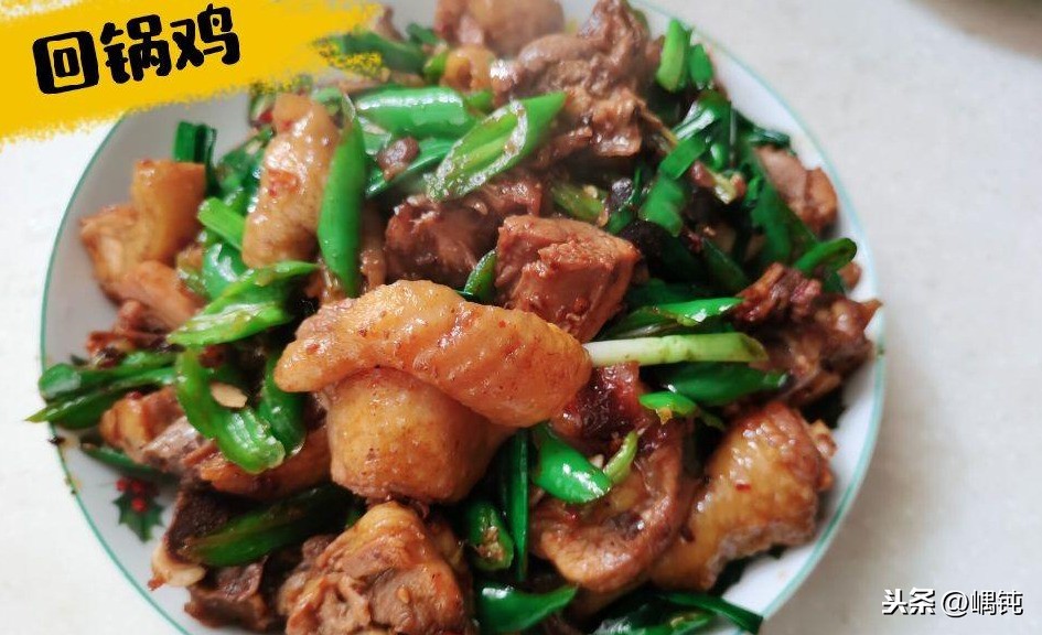 回锅鸡,顾名思义,回锅肉中的猪肉用鸡肉取代,确切地说,是将猪肉片换成了鸡块。