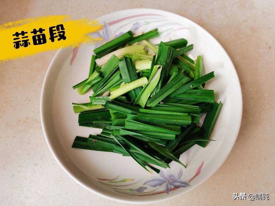 4、倒入蒜苗,加味精、白糖、少许食盐调味。