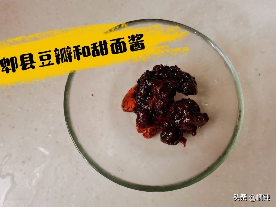 主要调料:郫县豆瓣5克、川式甜面酱5克、食盐、味精、糖、