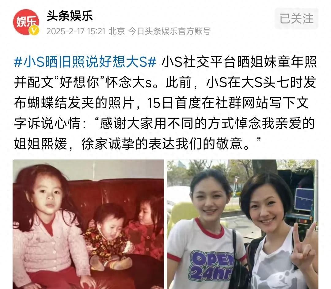 小s晒与大s幼年旧照称“好想你”,好友曾透露其仍然处于悲伤之中