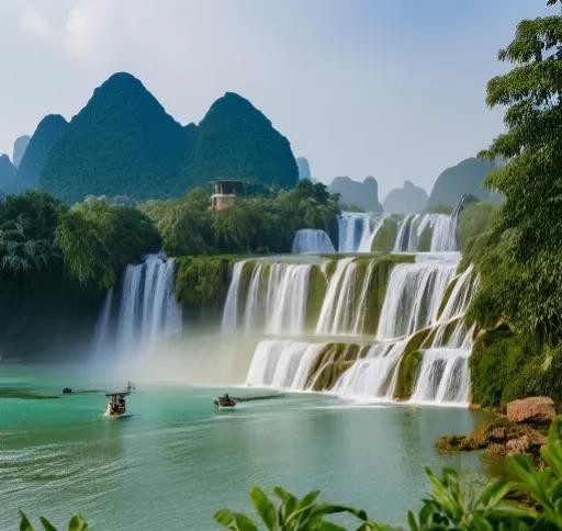 德天跨国瀑布景区位于中越边境,是亚洲第一大跨国瀑布。瀑布高约70米,宽约200米,气势磅礴,景色壮观。在这里可以欣赏到壮族的传统文化和风俗民情,领略边关的历史气息。