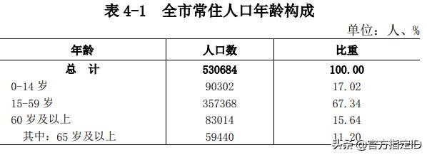 全市常住人口中,0-14岁人口为90302人,占17.02%;15-59岁人口为357368 人,占67.34%;60岁及以上人口为83014人,占15.64%,其中65岁及以上人口为59440 人,占11.20%。60岁及以上人口占比15.64%在江门市中排第5位,高于广东省的12.35%,老龄化程度不算太严重。