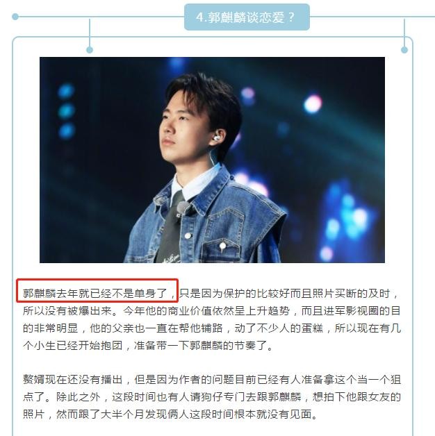 不得不说,这个“真”字用得也是相当有意思,让人不免联想到前段时间,郭麒麟被曝与蒋依依在恋爱。