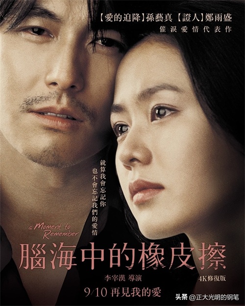 2004年上映的韩国爱情电影,改编自同名小说。故事讲述了年轻情侣智贤(郑雨盛饰)和慧心(宋慧乔饰)的感人爱情。慧心是一位普通的女性,患有早发性阿尔茨海默病,记忆逐渐消失,日常生活变得困顿与迷茫。为了陪伴她,智贤不离不弃,尽力帮助她回忆过去的点滴,两人之间的深情与承诺愈加坚固。影片通过细腻的情感表达,探讨了爱情中的牺牲与守护,以及在面对疾病时的无奈与坚强。电影充满温暖与悲伤,展现了爱与记忆的珍贵与脆弱,成为韩国影坛经典的爱情作品。