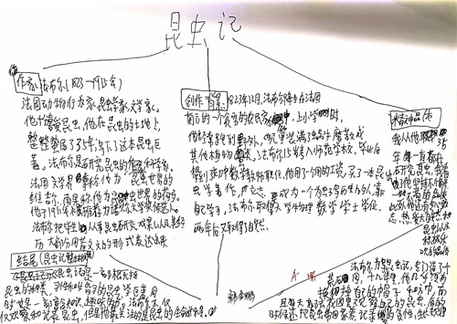 经过前几周的阅读和几个小组同学的努力,802班关于《昆虫记》思维导图第一波作品亮相了。每一个孩子都在用自己的创意感受着作品的科学精神和生命体验,他们用自己的生命体验与作者的思想在互动共舞,稚嫩的笔触也不乏有深刻的见解,不甚漂亮的文字中却不乏洋溢着对阅读的感悟。
