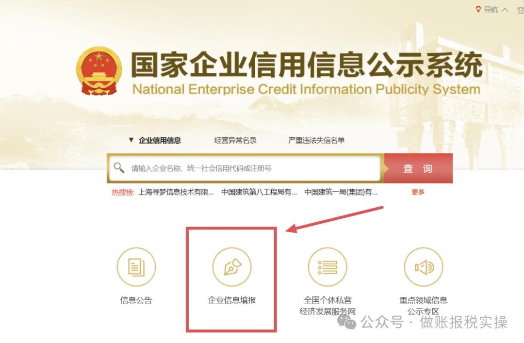 2、进入官网,点击【企业信息填报】;