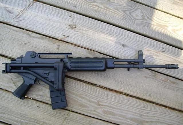 它是韩国的一种5.56mm小口径自动步枪,由大宇公司制造。这种枪在设计上采用了导气式自动原理、折叠式枪托和6条右旋膛线,并考虑到了自己国家的身体条件,使用了折叠式护木,以最大化机动性能。K2突击步枪的杀伤力很强,精准度也很高,但较慢的射击速度可能导致近战中处于劣势。