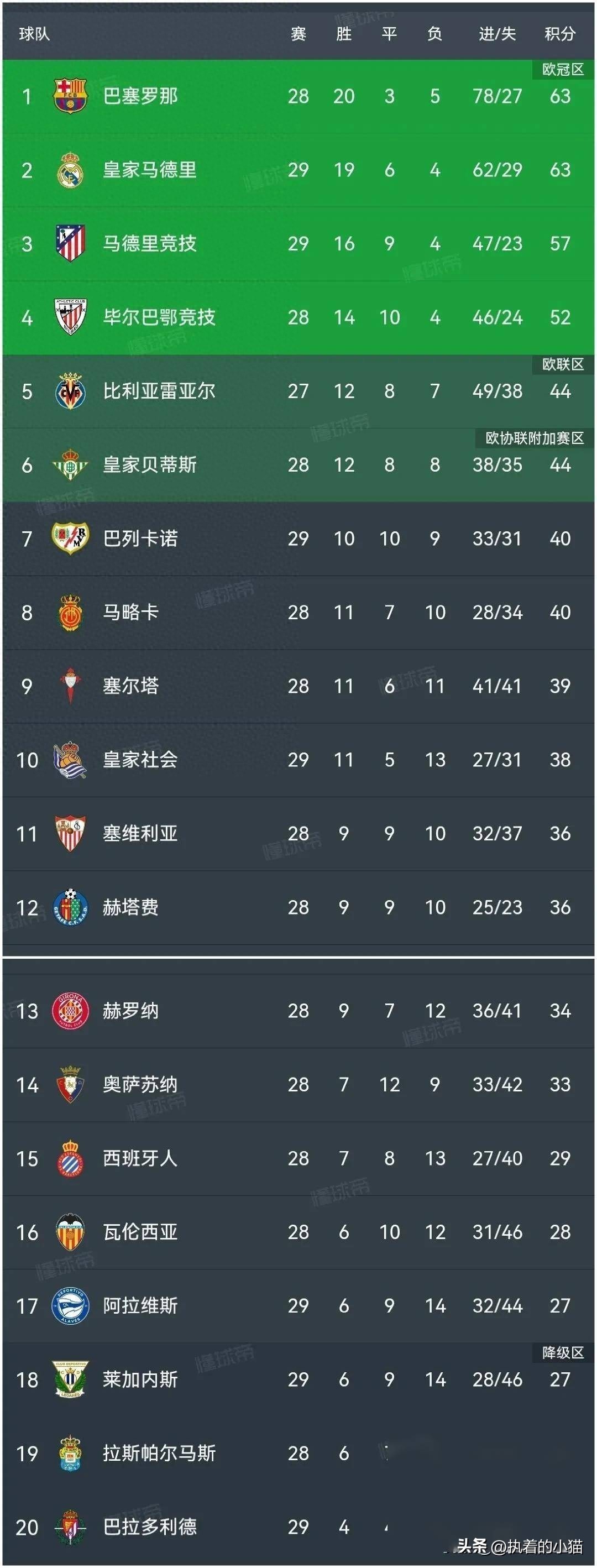 西甲积分榜动态:姆巴佩独进两球,皇马3:2战平巴萨,马竞1:1被逼平失争冠位
