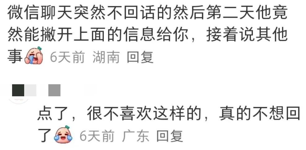 我是真的搞不懂为什么会有人忽视上一条消息或者聊着聊着就不见了(也不是睡觉时间),第二天就略过那些信息,开始聊自己的。