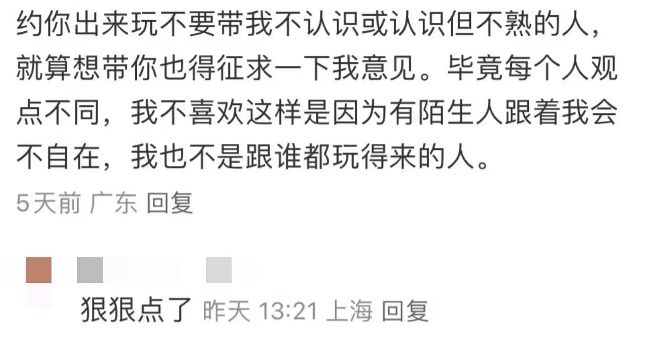 跟她二人单独聚,正喝着小酒聊着天,她突然来一句“我去接个朋友”1.不提前跟我说 2.她那个朋友我根本不认识3.我之前明确跟她说过反感这种行为依旧我行我素,后面吵架她翻旧账说我性格真的很有问题,因为跟她朋友处不来。这种人真的呵呵