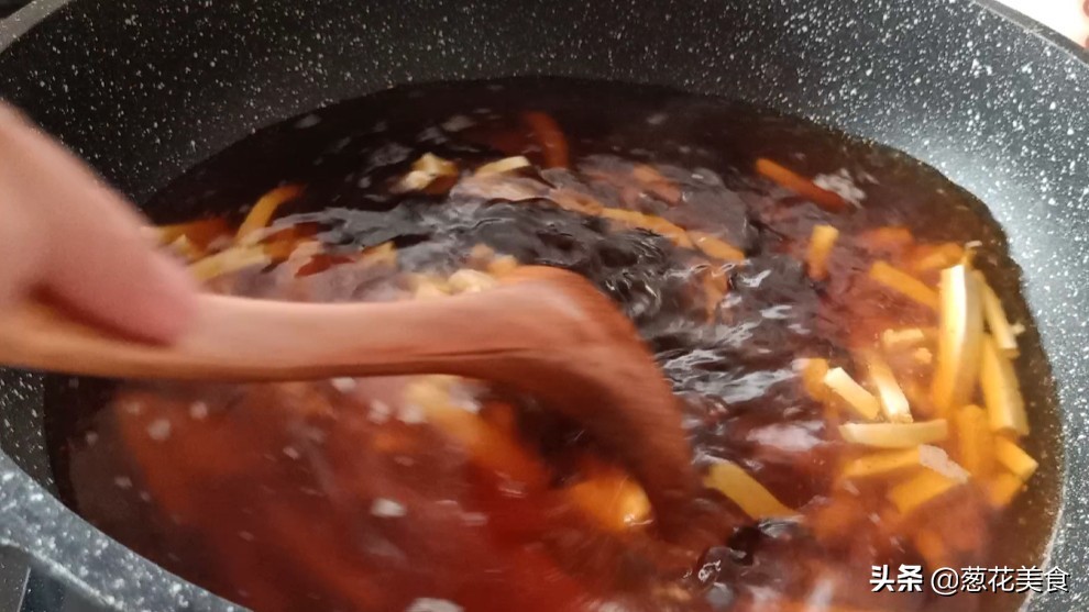 4.锅中加入适量的水,水开以后加入生抽、老抽、盐