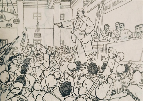一九一七年十月七日,从芬兰开出的第七十五次列车进入了俄国境内。机车穿过夜雾,向俄国的首都——彼得格勒奔驰。无产阶级的伟大导师列宁在这列火车的机车上。俄国的二月革命,推翻了沙皇政府,但政权却被资产阶级所篡夺。全部政权归苏维埃。布尔什维克党决定准备武装起义,用武力推翻资产阶级政权而建立苏维埃政权。