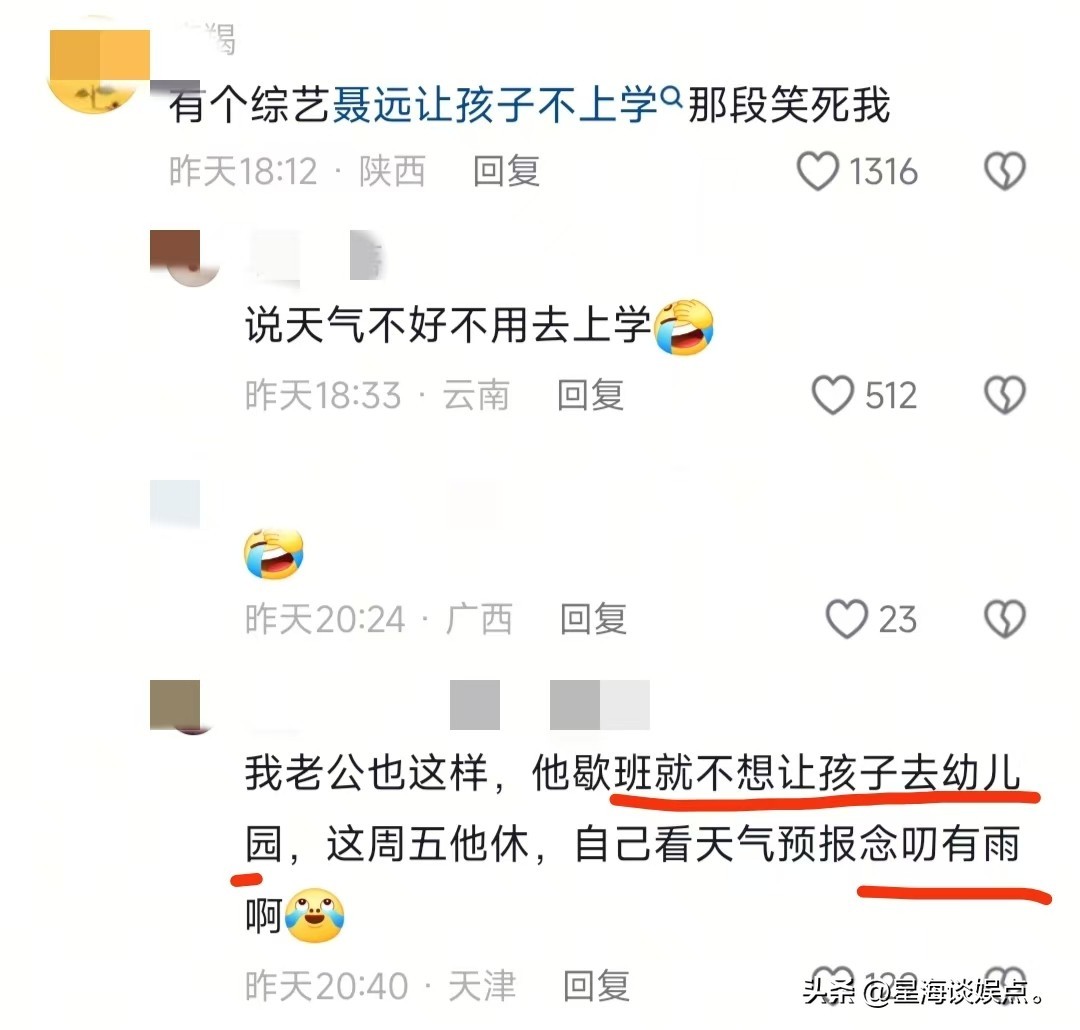 还有网友觉得:聂远不让孩子上学挺搞笑的。