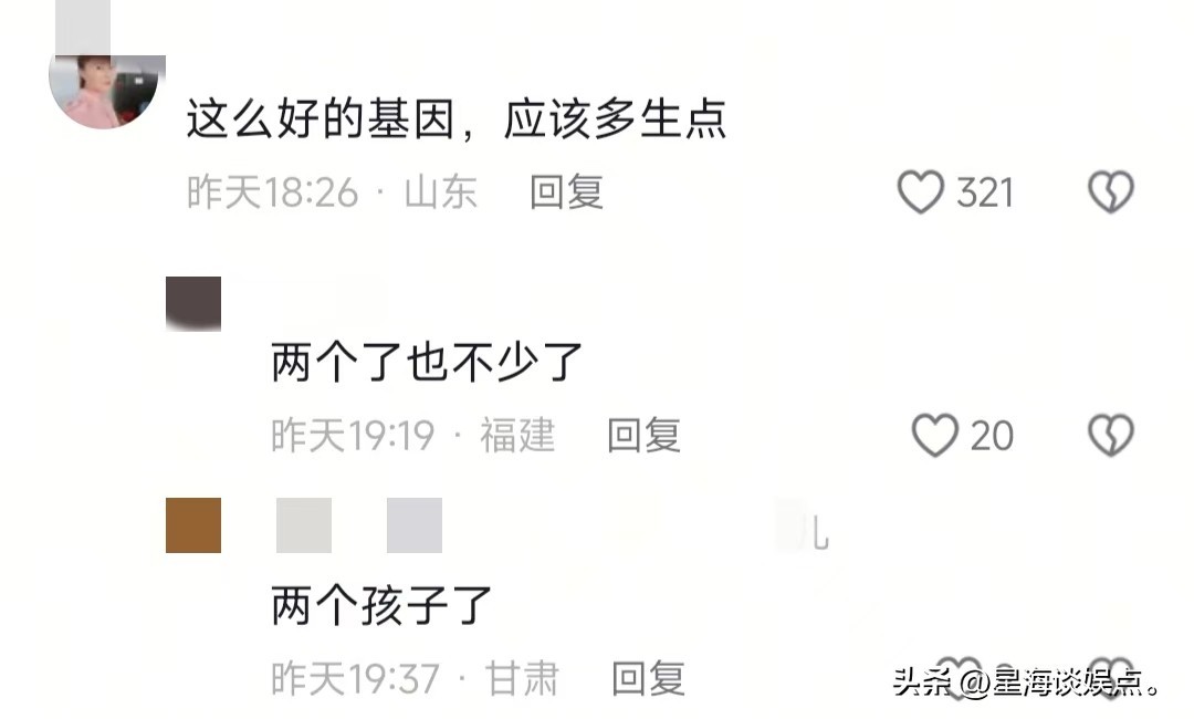 还有操心未来的: “孩子以后升学咋办?靠爹妈名气?还是得回学校啃书本啊!”、“现在漂亮是资本,长远看,肚子里没墨水儿也不行吧?”