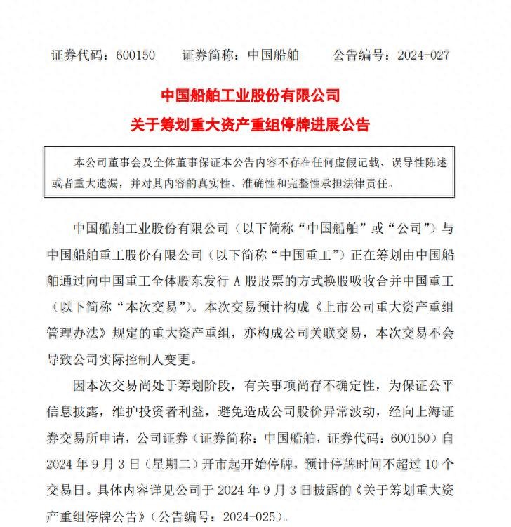 分立25年后再次合并,中国船舶宣布吸收中国重工!