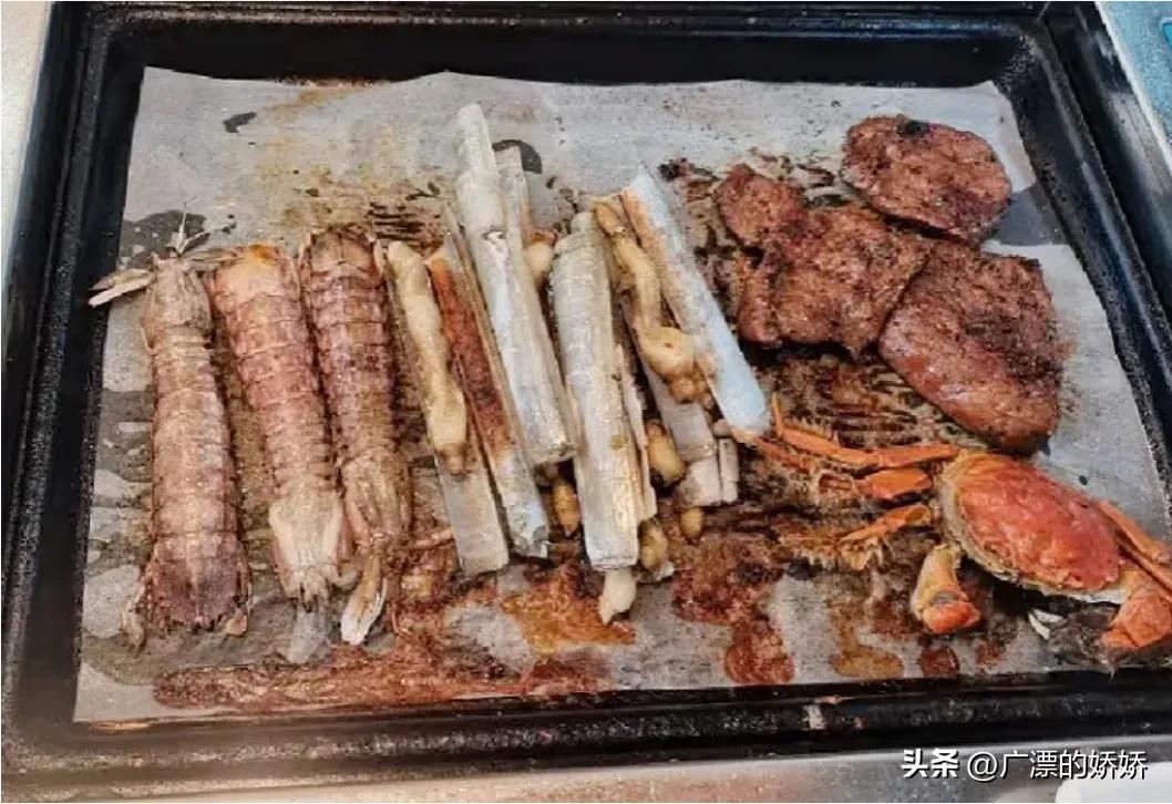各种各样的海鲜琳琅满目,而且可以敞开肚子吃,老板碰到这样的大吃货要亏本了。