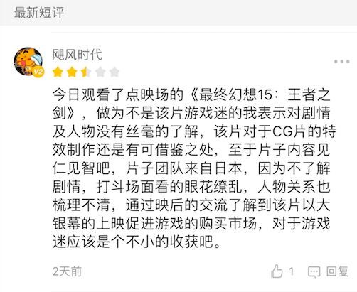 《最终幻想15:王者之剑》首日评7.7分,一线城市评分最高