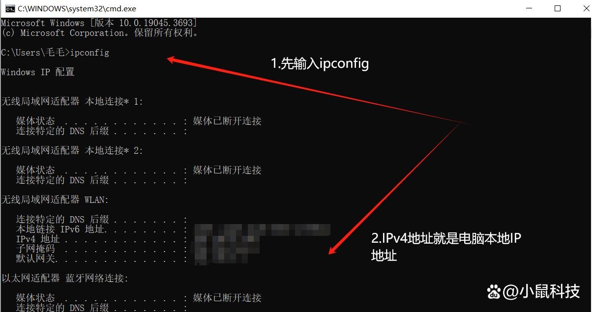 3.在输出结果中,可以找到“以太网适配器 本地连接”或“无线局域网适配器 WLAN”的信息,其中包括IPv4地址,这就是电脑的IP地址。