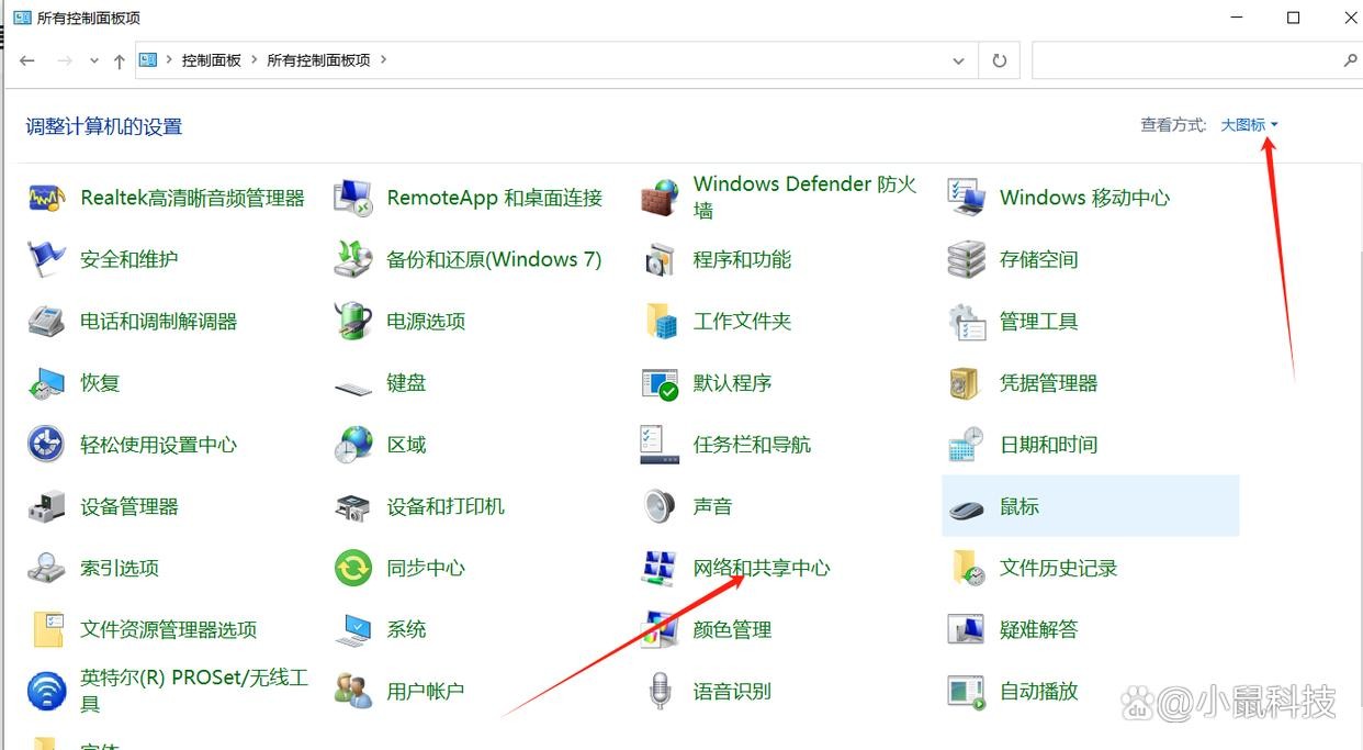 1.打开“控制面板”,选择“网络和共享中心”。