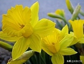 黄水仙为多年生草本,有皮鳞茎卵圆形,花横向或略向上开放,外花冠成喇叭形、黄色,边缘呈不规则齿状皱榴。花色温柔和谐,清香诱人,是世界著名的球根花卉。