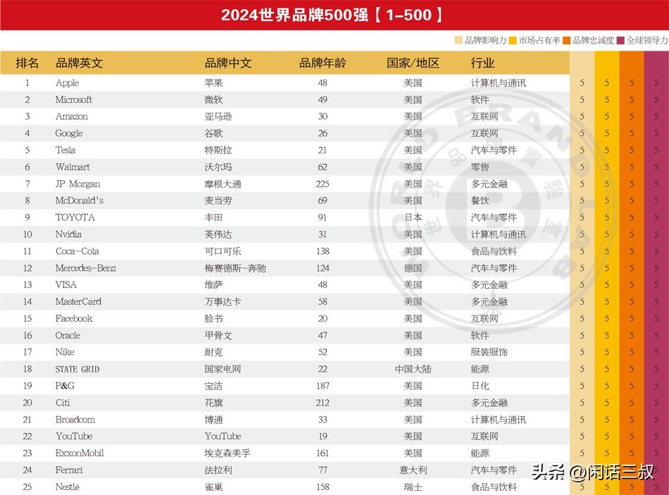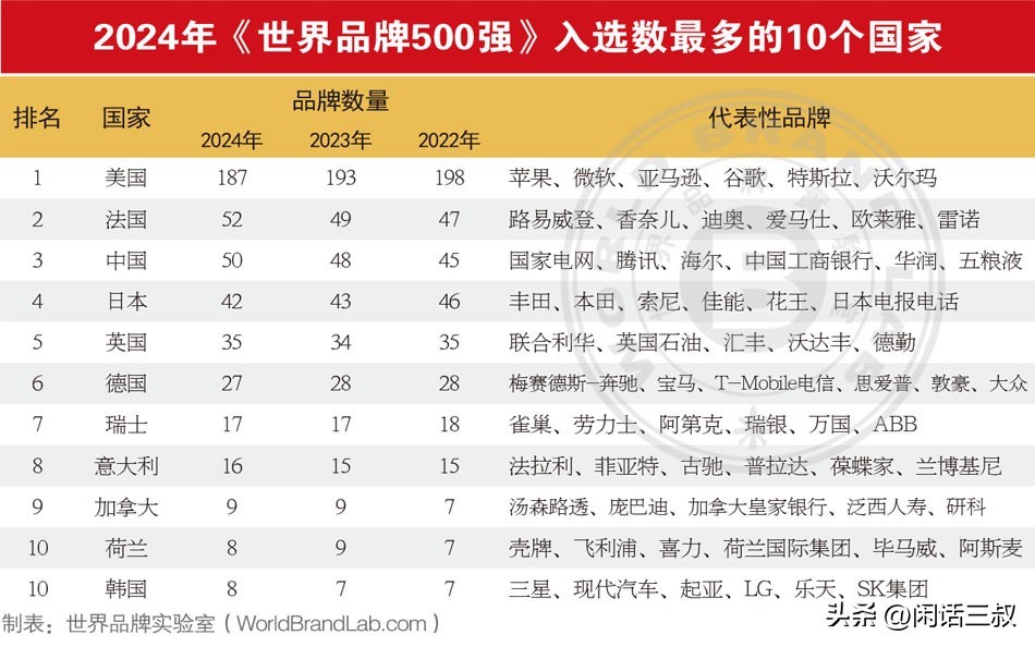 最新2024世界品牌500强!中国排名第三 华为排名56