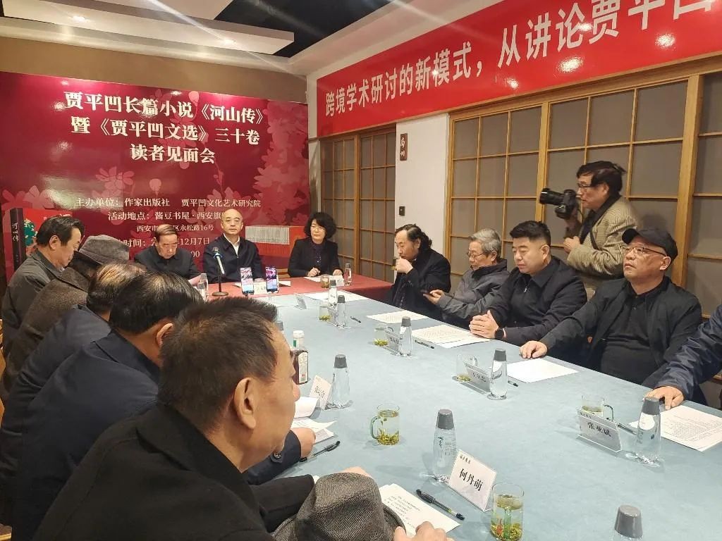 2023年9月,贾平凹的第二十部长篇小说《河山传》由作家出版社推出,以农村青年和企业家两个代表群体的命运来书写国家四十多年的发展历程。小说时间跨度长,涉猎面广,触及底层人士、商界精英、政治掮客、高级官员,在贾平凹小说体系里独树一帜。2024年初,《贾平凹文选》全三十册精装版与广大读者见面,其中完整收录了贾平凹长篇小说十九卷、中篇小说三卷、短篇小说编一卷,散文及诗歌、访谈七卷,是迄今为止对贾平凹重要作品收录得最全面的选集版本。活动现场,中国作协副主席吴义勤表示,贾平凹对文学的敬重、对生活的热爱在当代作家群体中堪称翘楚。其对时代的敏锐感知力甚至超越年轻人,既是时代的忠实记录者,亦是文学百科全书的卓越书写者。每一部作品都开启全新视野。西安作为文学与文化的厚土,这里的读者令人动容。他期望西安的作家与读者能增进互动交流,合力推动新时代文学迈向高质量发展新征程。文学评论家白烨评价《河山传》写出了一个时代的缩影,包含的内容隐含的意义特别深,并感慨地说:“陕西作家志存高远,其现实主义精神、理论批评和创作者的良性互动,以及陕西作家的良性竞争,还有陕西读者和作者的相依相存,这一切都造就了陕西作家优秀作品的问世。我也期待陕西更多中青年作家优秀作品的问世,推动陕西文学进一步发展。”文化学者肖云儒认为,贾平凹的创作大体分为三个系列:具象描绘秦岭山乡内外的时代生活变迁;从情绪角度捕捉社会情绪变迁来反映时代生活;喻像式作品,通过寓意与人类变迁呼应。他的艺术思维多元,有形象思维、情象思维、喻象思维,从而成为文学上全能多面的作家。