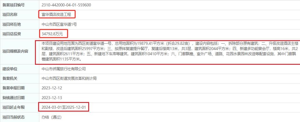 停业7年,总投3.48亿!中山富华酒店改造,通过备案了!