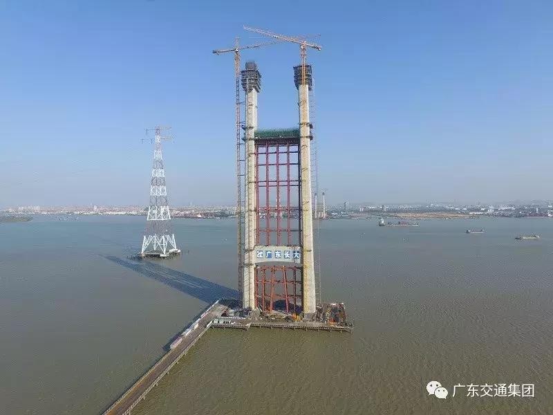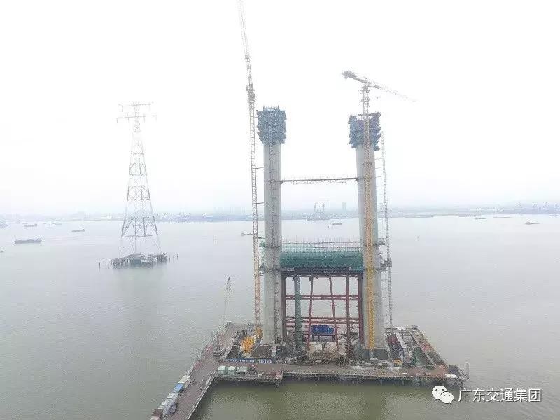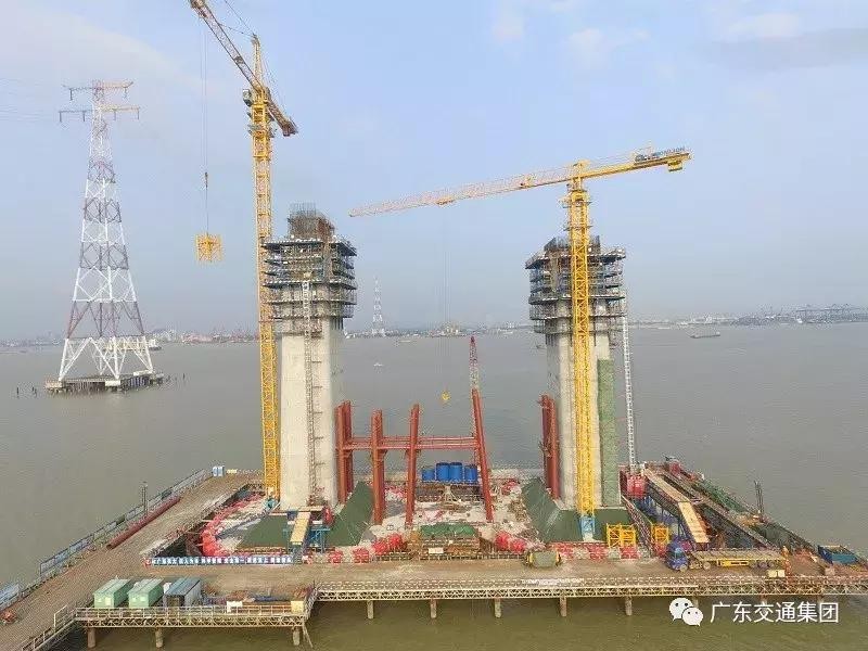 完成下横梁及中塔柱施工。摄于2016年8月11日