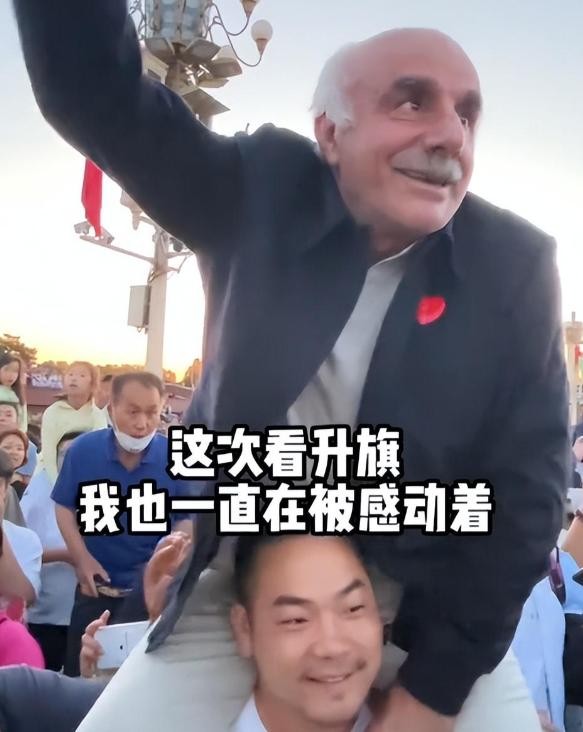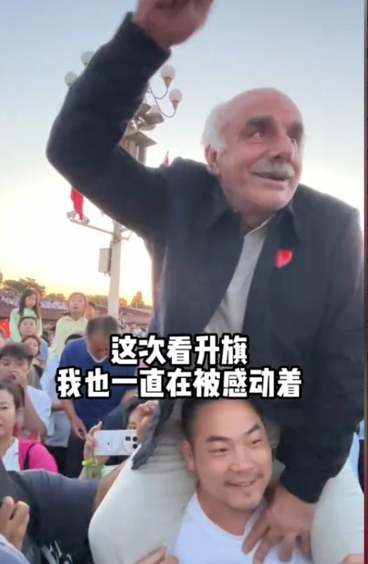 2、女婿驮外国岳父看升旗,外国岳父被中国感动