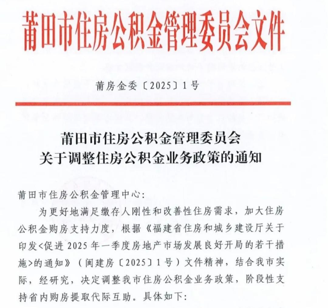 1月26日,莆田市住房公积金管理委员会发布最新通知,调整住房公积金业务政策。