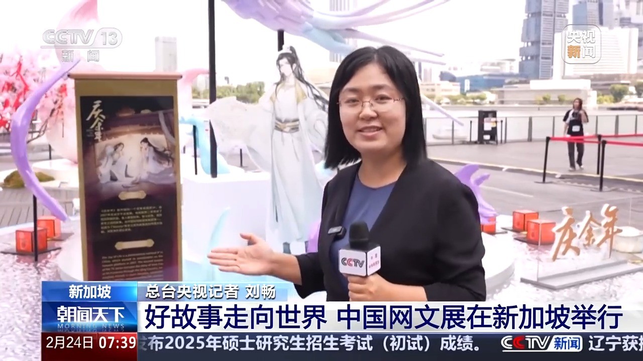 总台央视记者 刘畅:我现在在新加坡滨海湾广场,从春节开始,中国网文IP活动每天在这里举行,充满中国文化特色的展台吸引了大量游客和民众前来参观。