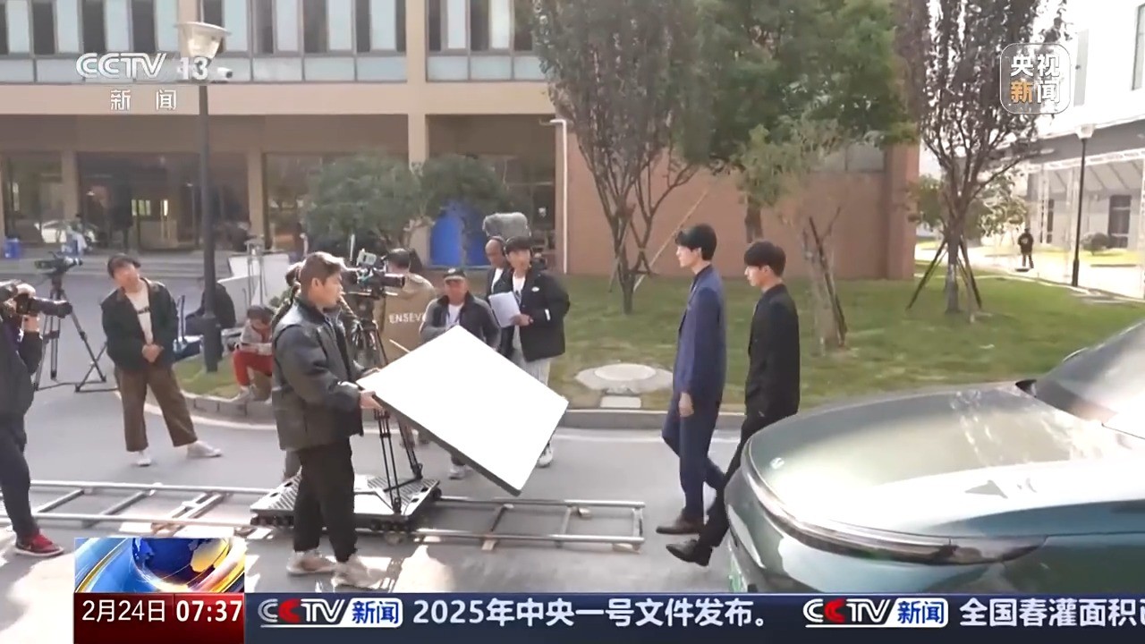 在北京郊区的一家影视基地,记者还没进门,就遇到了剧组,仔细一看,手机和单反相机架在稳定器上,拍的是一部微短剧。拐进不起眼的大门,里面更是一片热闹景象。